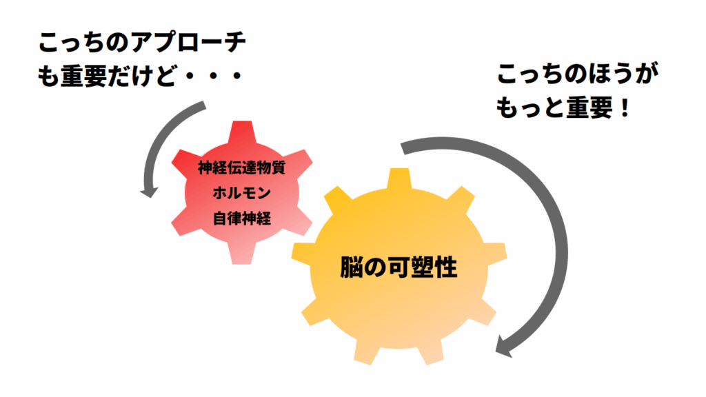 その上で、脳の可塑性を高めるアプローチ(栄養・睡眠・運動・ストレスケアなど)を標準治療にプラスすることをおすすめします。薬が助けるのは脳の働きの一部ですが、可塑性の回復によって、神経伝達物質や自律神経やホルモン系を含む全体のバランスが自然に整い、より根本的な回復が進んでいきます。