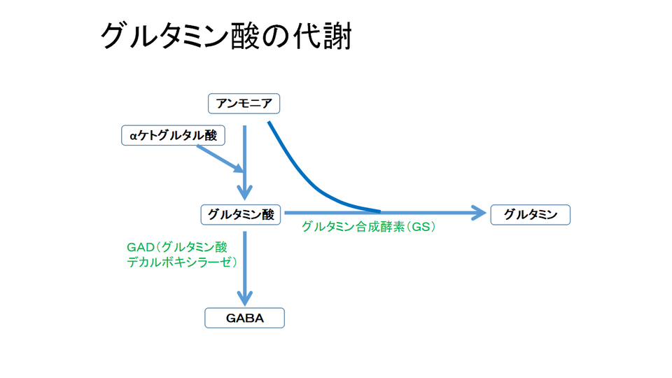 グルタミン酸はGAD(グルタミン酸デカルボキシラーゼ)という酵素によってGABA(γアミノ酪酸)という抑制性の神経伝達物質、つまり脳の興奮を抑え精神を安定させる物質に変わります。医師が処方するベンゾジアゼピン系の薬はGABAの作用を強める事によって興奮を抑えてます。GADの酵素活性が低下している原因として以下のような事が考えられます。