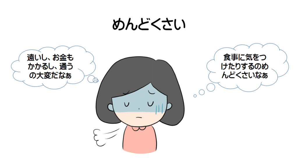 「治りたい」とか「早く良くなりたい」と思うと、「めんどくさい」という気持ちが出てくる人もいます。例えば、治療院が遠いとか、お金がかかるとか、食事に気をつけなければならない、とか、そういう、めんどくさい気持ちが、治りたい気持ちにブレーキをかけるんです。特に、短期間で変化がない場合、治したい気持ちより、めんどくさい気持ちが上回ってきますので、どこにいってもセラピーを中止するとうういう事が起こります。