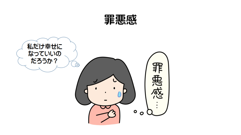 また、自分が幸せになる事に対する罪悪感を抱えている人もいます。特に、重い病気だったり、介護で疲れている家族がいる人に、自分だけ幸せになってもいいのだろうかという罪悪感が湧いてくる事があります。また、自分のせいで我が子が不幸になったと思っている親は、自分は幸せになってはいけないという罪悪感を手放す事ができません。このパターンも広汎性の心理的逆転がおこります。