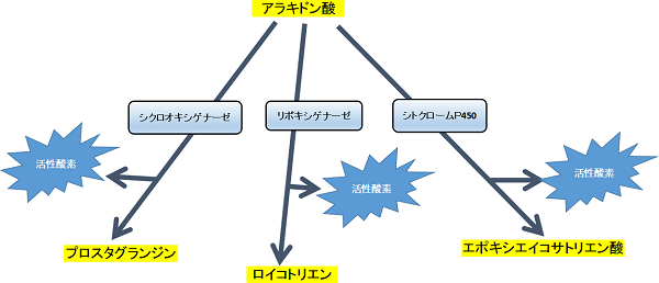 アラキドン酸の代謝の過程で活性酸素が発生する
