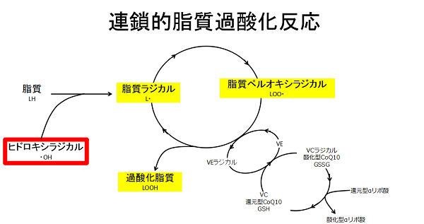 つまり、ヒドロキシラジカルが脂質を過酸化脂質に変えてしまうという事です。