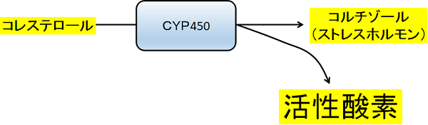 ↑コルチゾールの合成と分解の両方にシトクロームP450(CYP450)という酵素群が働くのですが、この酵素は副産物として活性酸素を出します。