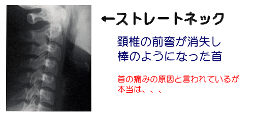 首の痛みで整形外科に行くと「ストレートネック」という診断をされる事があります。しかし多くの場合はストレートネックが原因ではありません。ストレートネックでも痛みが全くない人はたくさんいます。本当の原因は違う所にあります。